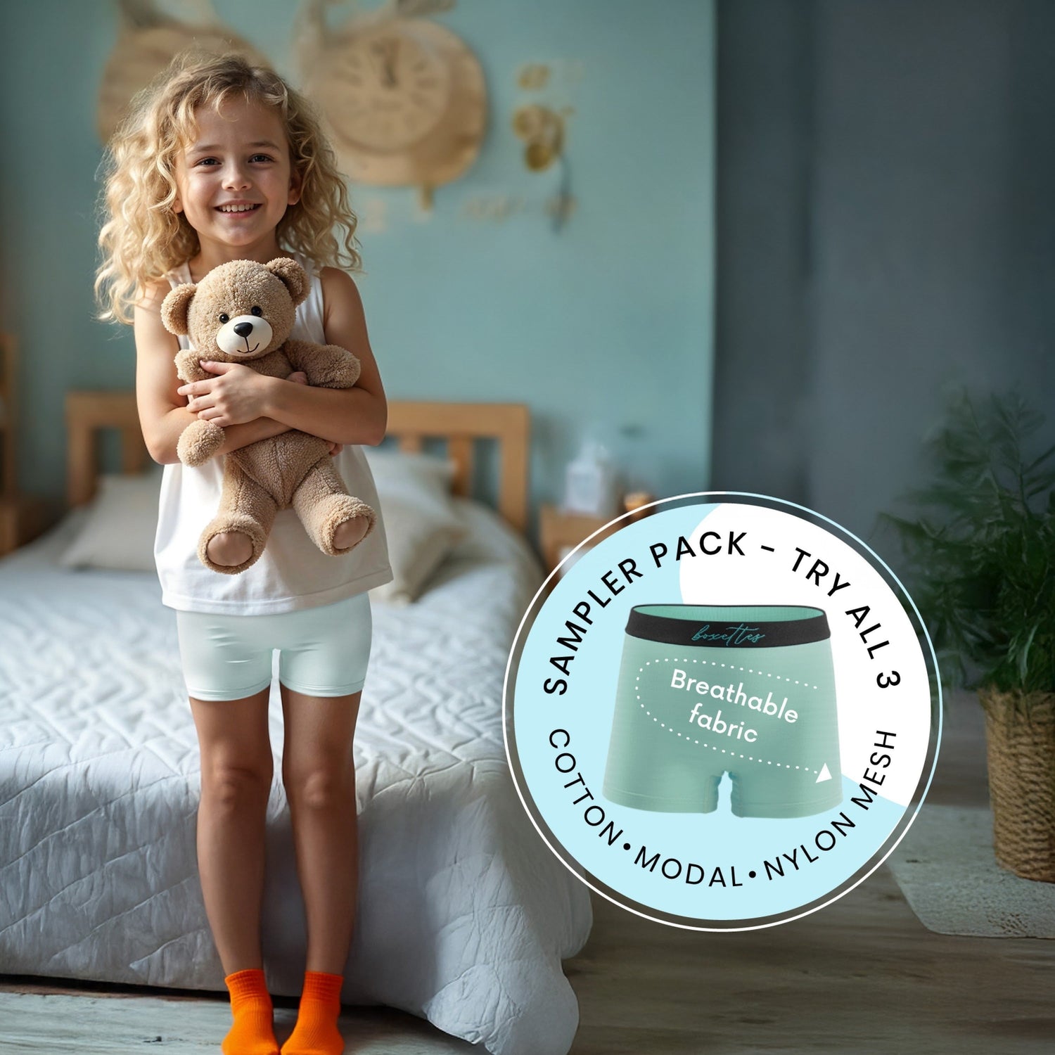 3-Parti Pack Girls Boxer Briefs Sampler (cotton, nylon mesh and modal)